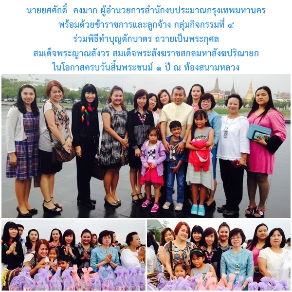 ผู้บริหารและข้าราชการ ลูกจ้าง ร่วมพิธีทำบุญตักบาตร ถวายเป็นพระกุศลสมเด็จพระญาณสังวร สมเด็จพระสังฆราชสกลมหาสังฆปริณายก ในโอกาสครบวันสิ้นพระชนม์ 1 ปี ณ ท้องสนามหลวง
