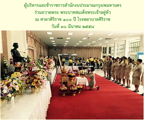 ผู้บริหารและข้าราชการสำนักงบประมาณกรุงเทพมหานคร ถวายพระพรแด่พระบาทสมเด็จพระเจ้าอยู่หัว ณ ศาลาศิริราช 100 ปี โรงพยาบาลศิริราช
