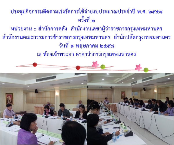 ประชุมติดตามเร่งรัดการใช้จ่ายงบประมาณประจำปี พ.ศ. 2558 ครั้งที่ 2 (1 พฤษภาคม 2558)