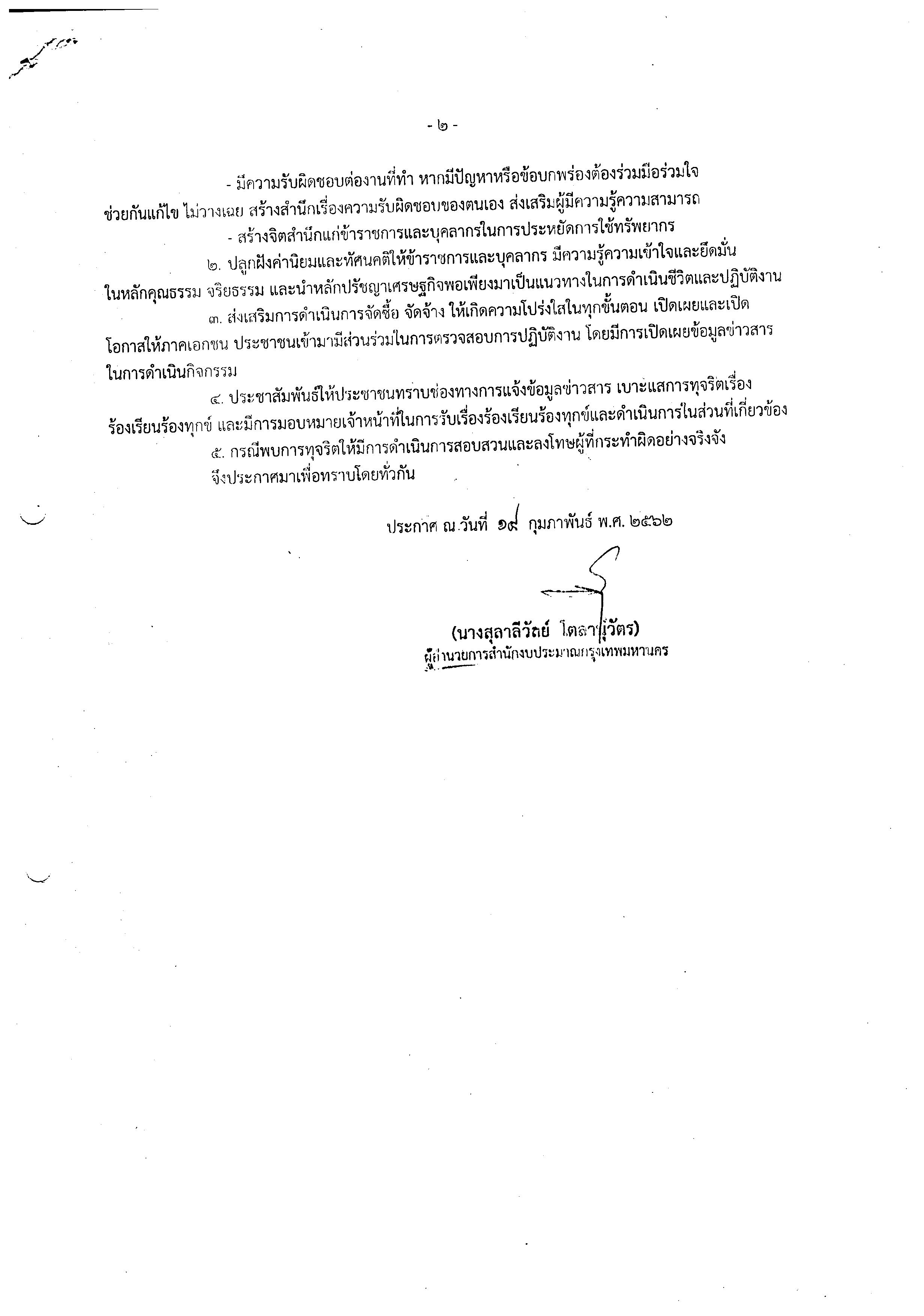 ประกาศสำนักงบประมาณกรุงเทพมหานคร เรื่อง เจตจำนงต่อต้านการทุจริต
