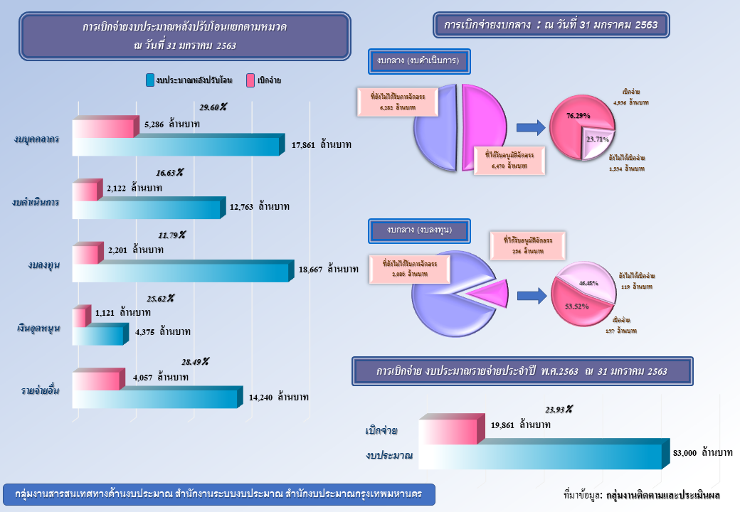 ผลการเบิกจ่ายงบประจำปีงบประมาณ พ.ศ. ๒๕๖๓ (รายเดือน)