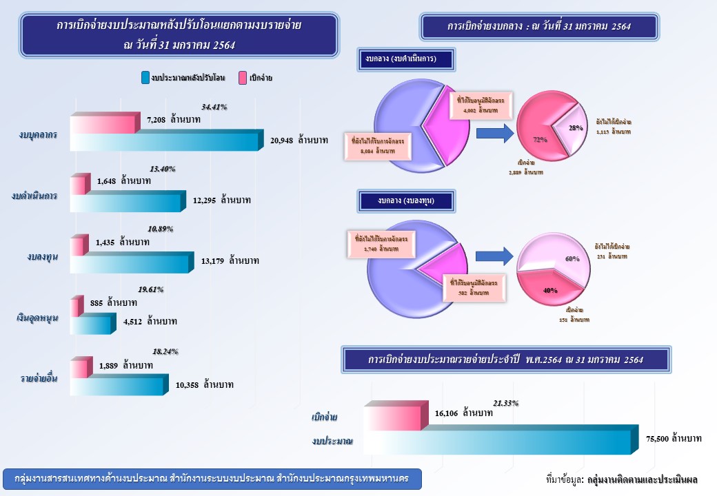 ผลการเบิกจ่ายงบประมาณ 31 ม.ค. 2564