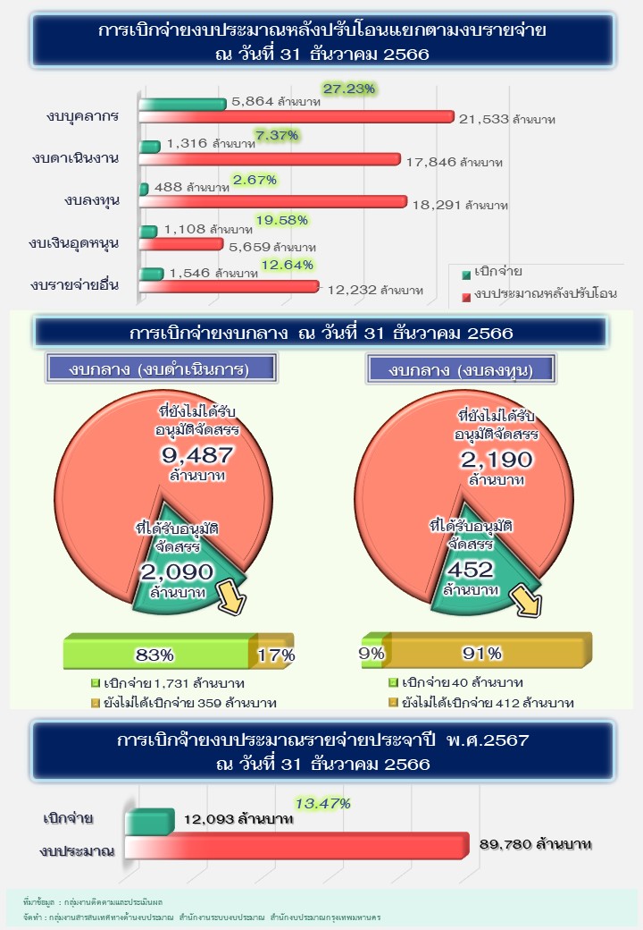 ผลการเบิกจ่ายงบประมาณ 2567 (ธ.ค. 66)
