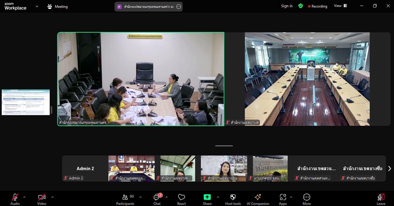 (21 ต.ค. 67) 09.00 น. นางสาวกนกวรรณ เอี่ยมลิ้ม ผู้อำนวยการสำนักงบประมาณกรุงเทพมหานคร เป็นประธานในการประชุมทบทวนตัวชี้วัดผลสัมฤทธิ์และตัวชี้วัดงานของฝ่ายปกครอง สำนักงานงานเขต ประจำปีงบประมาณ พ.ศ.2569 โดยมีรองผู้อำนวยการสำนักงบประมาณกรุงเทพมหานคร นางศิรินทรีย์ ครุฑสูตร และนางวาสนา บูรณกิตติโสภณ พร้อมเจ้าหน้าที่ที่เกี่ยวข้อง เข้าร่วมประชุมในครั้งนี้ด้วย ณ ห้องประชุมธนพัฒน์ ชั้น 4 สำนักงบประมาณกรุงเทพมหานคร และได้มีการผ่านสื่ออิเล็กทรอนิกส์ Zoom Meeting ให้กับฝ่ายปกครอง สำนักงานงานเขต