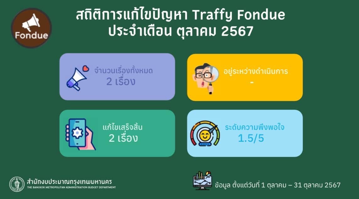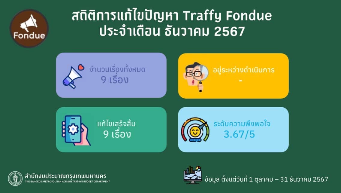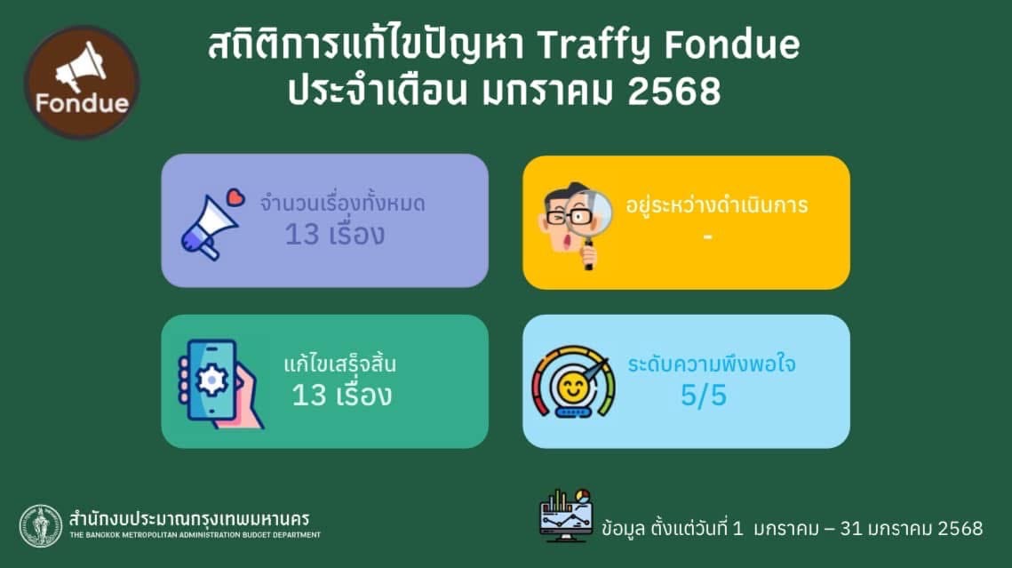สรุปผลการแก้ไขปัญหาที่ได้รับแจ้งผ่านTraffy Fondue ของสำนักงบประมาณกรุงเทพมหานคร (ต.ค. 2567 - ม.ค. 2568)